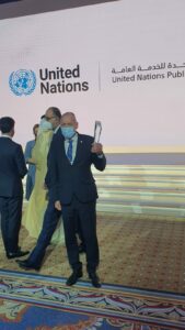 Departamentul pentru Dezvoltare Durabilă a primit astăzi, 13 decembrie 2021, distincția Organizației Națiunilor Unite (ONU) pentru inovație în serviciu public în cadrul galei United Public Service Forum 2021 de la Dubai.